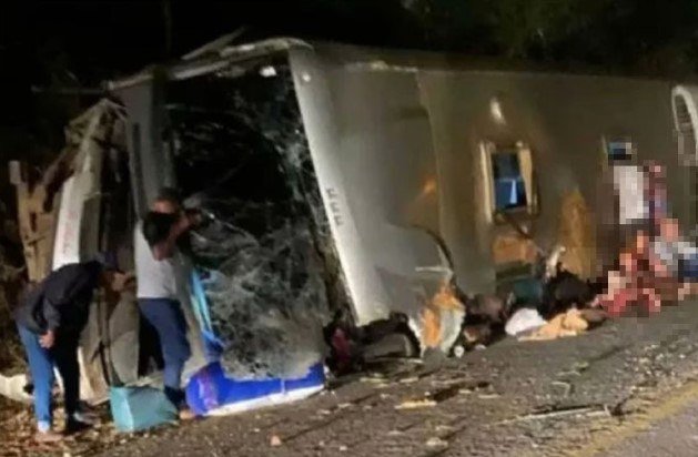 La policía informó que el conductor perdió el control del autobús, se cruzó al carril contrario y chocó contra piedras en la cuneta. Luego regresó al carril correcto, pero se estrelló contra un terraplén de arena, lo que provocó el vuelco del vehículo.
