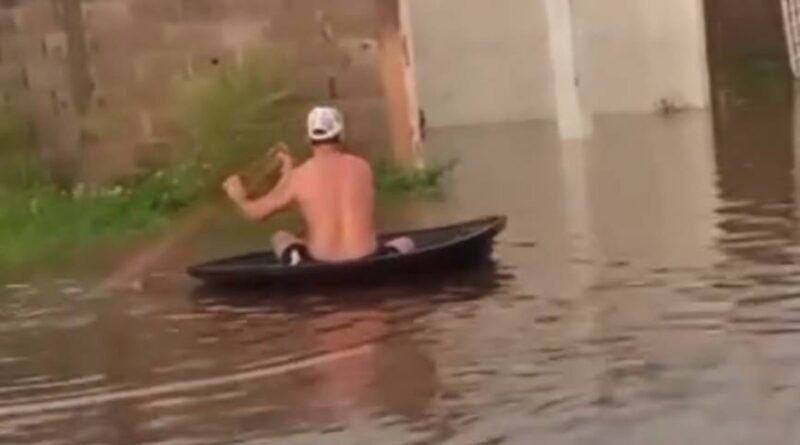 Vecinos improvisan canoas en Cabimas para navegar en calles inundadas por aguacero