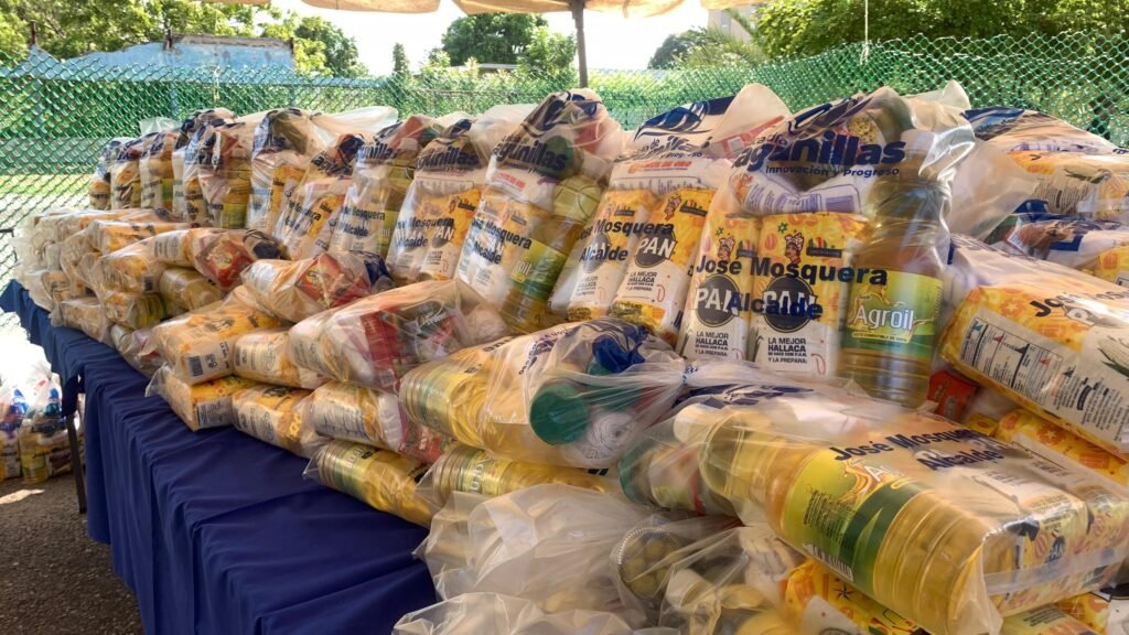 Cada bolsa incluía 11 productos fundamentales para la elaboración de hallacas, entre ellos: harina de maíz, aceite, aceitunas, alcaparras, pasas, onoto, cubitos, pabilo y sal. Asi mismo, se dispuso la venta de hojas de hallaca, verduras, carne, cerdo, huevo, queso y pan de jamón, ampliando la oferta de alimentos para el beneficio integral de los asistentes.