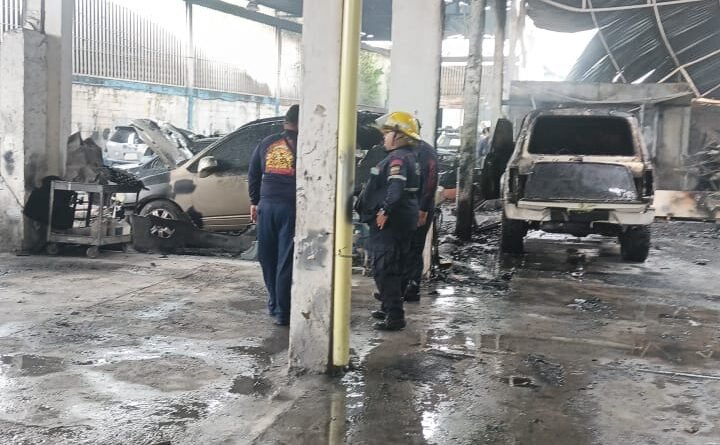 El Diario Tricolor.- Más de una veintena de hombres del Cuerpo de Bomberos de Maracaibo lograron sofocar un incendio suscitado en la mañana de este sábado en un Taller de Latonería y Pintura ubicado detrás de la Universidad José Gregorio Hernández, el cual dejó daños en algunos vehículos que se encontraban en ese momento en el sitio.