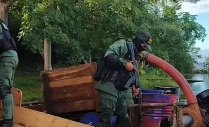 El Díario Tricolor.- Funcionarios de la Fuerza Armada Nacional Bolivariana (Fanb) destruyeron cinco embarcaciones usadas para minería ilegal en el estado Bolívar.