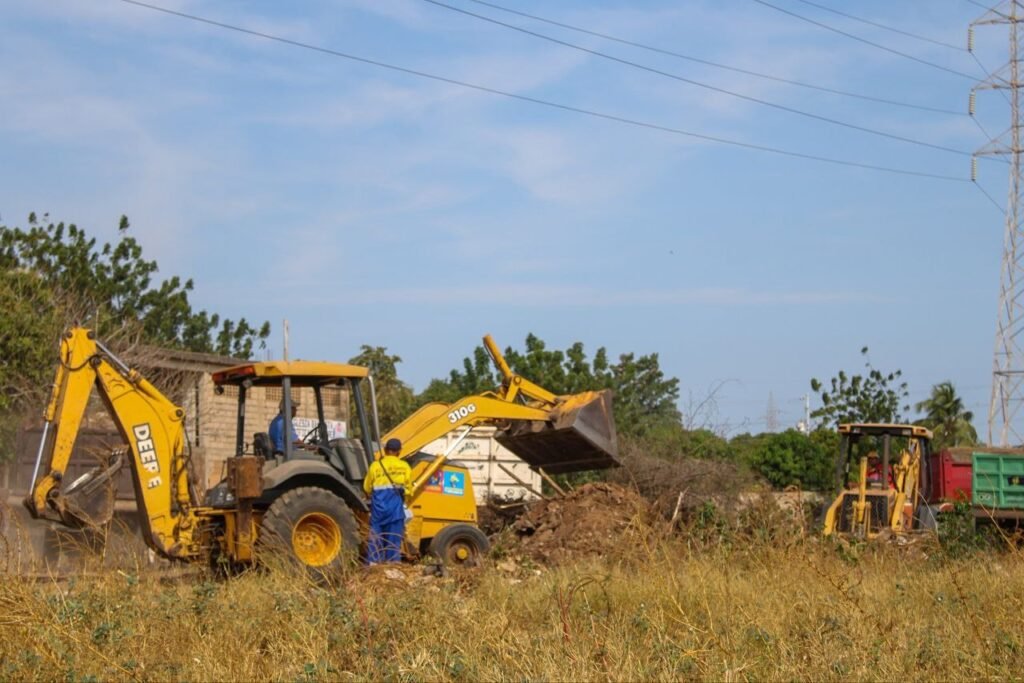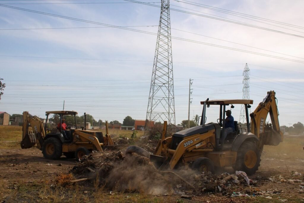 Los trabajos incluyeron desmalezamiento y recolección de escombros en toda la zona, con el despliegue de retroexcavadoras y 15 camiones volteo.