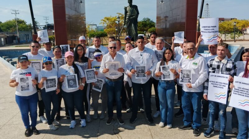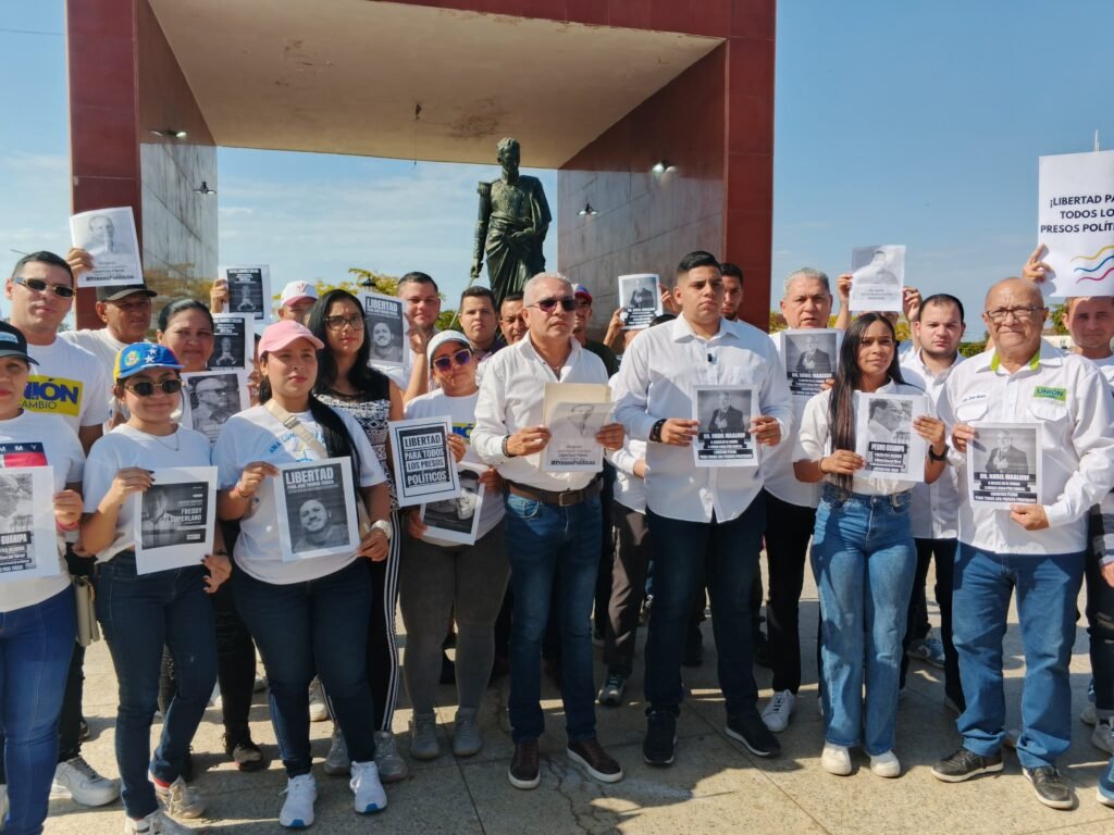 El Diario Tricolor.- En un acto de unidad y compromiso civil, el legislador José Villarreal, acompañado por la dirigencia del partido Unión y Cambio, encabezó este miércoles 4 una protesta pacífica en la Plaza Bolívar de Cabimas para exigir la aplicación de una Ley de Amnistía verdadera que garantice la libertad plena de todos los presos políticos en Venezuela.