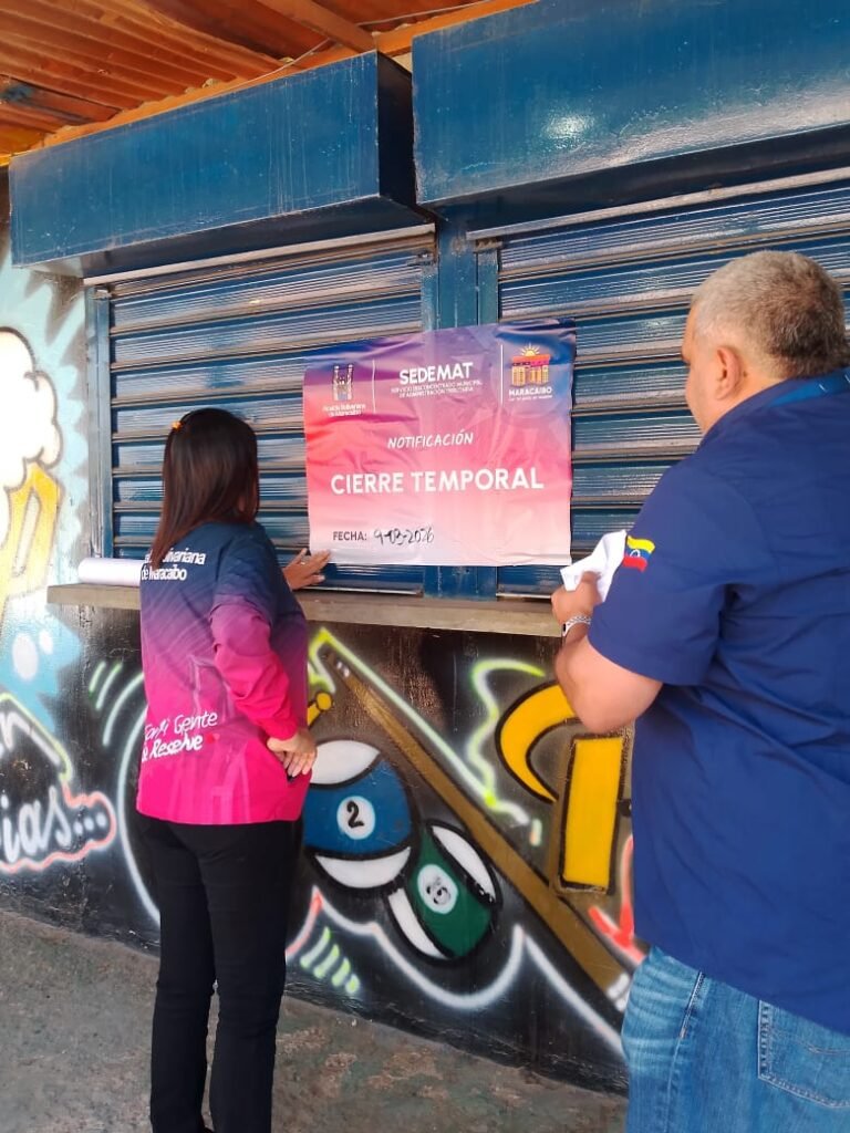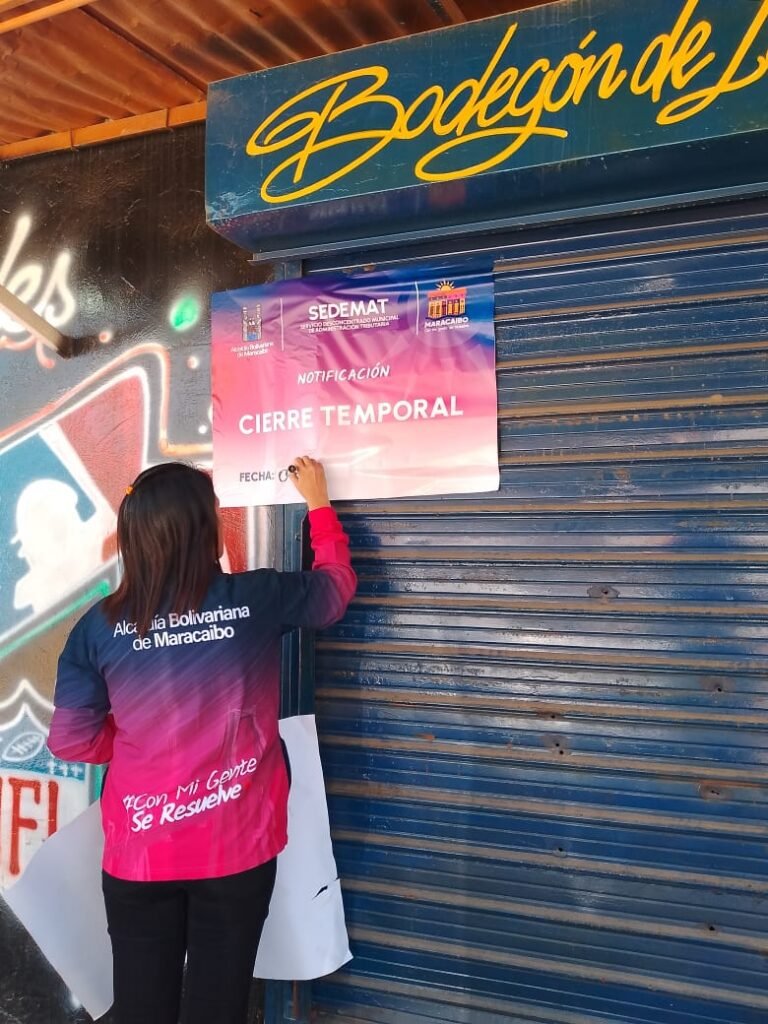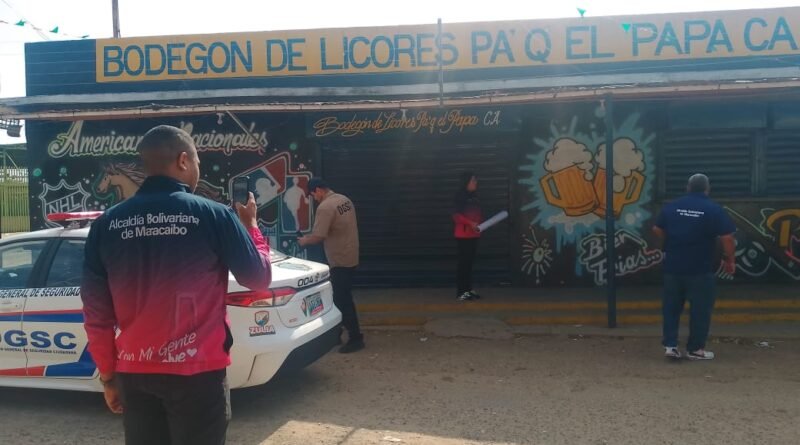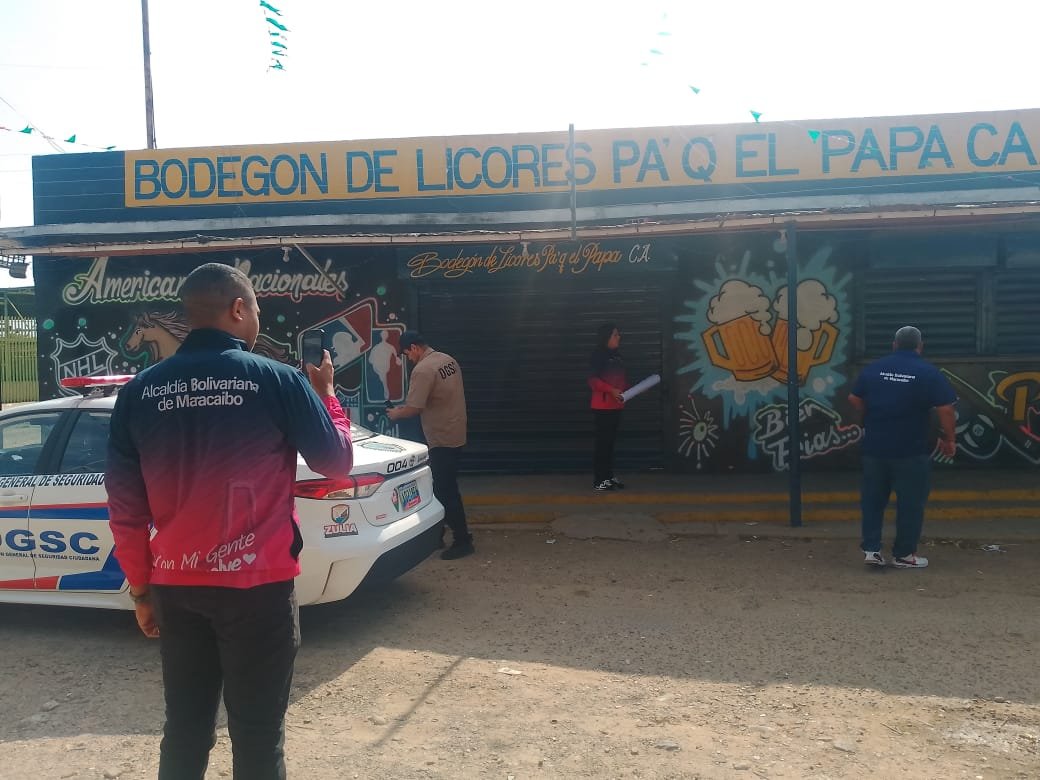 El Diario Tricolor.- Este lunes, la Dirección General de Seguridad Ciudadana, en un despliegue conjunto con el Servicio Desconcentrado Municipal de Administración Tributaria (SEDEMAT) y el Cuerpo de Bomberos de Maracaibo aplicó una medida de cierre temporal al establecimiento de licores «Pa’ Que el Papa», ubicado en el barrio Raúl Leoni de la parroquia Antonio Borjas Romero.