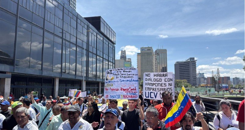 Asimismo, Yamileth Ugueto, de Fetraenseñanza, ofreció su testimonio durante la marcha, mientras Adrián Bolívar, de Fenasoesv, también se pronunció desde la UCV. Los videos muestran a los participantes caminando bajo el sol, con carteles que demandan “Dignidad para los trabajadores”.